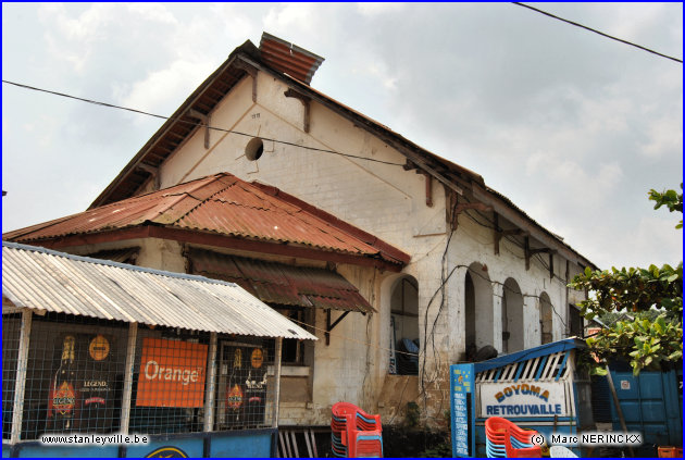 A gauche de la photo, au-dessus des palmiers, le sommet du Congo Palace. Le bâtiment à droite est une chapelle construite en 1919 (voir photo de juillet 2016 ci-après).