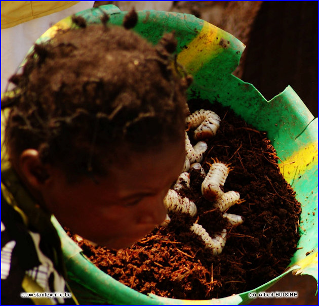 On récolte ces vers, dit-on, dans le cœur de certains palmiers qu'ils dévorent. Les noirs raffolent de ces vers, mais jamais un blanc n'a pu se décider à les goûter. Parfois, une jarre d'huile de palme tombe d'une pirogue, se brise, et un épais nuage de vermillon s'en échappe. L'hélice bat déjà que les derniers colporteurs sont encore à bord. Ils sautent dans l'eau, pataugent, et regagnent la rive en tenant leurs mannes en équilibre sur leur tête.