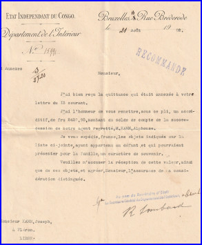 La maman de Léon Voituron rédige un résumé de la carrière d'Alphonse Kamm sur base des documents en sa possession.
