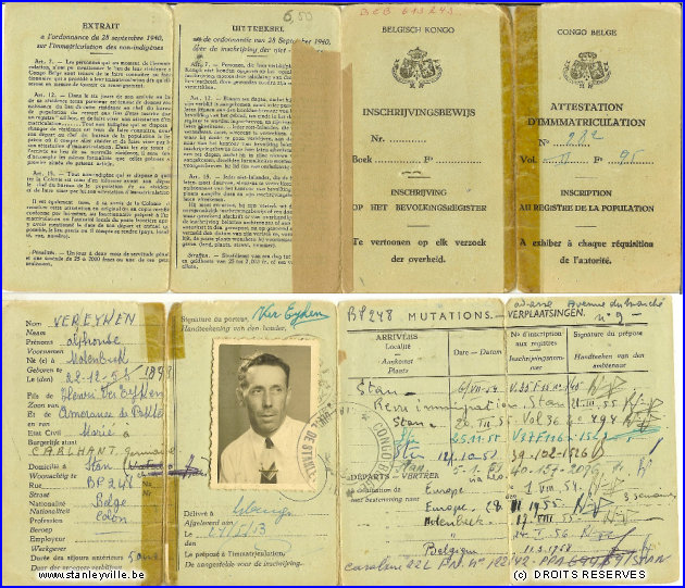 Carte d'identité coloniale (Attestation d'immatriculation)