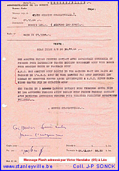 Texte du télégramme envoyé début décembre 1964 à Léopoldville par Victor Nandaka en vue de la réalisation du tract ci-après :